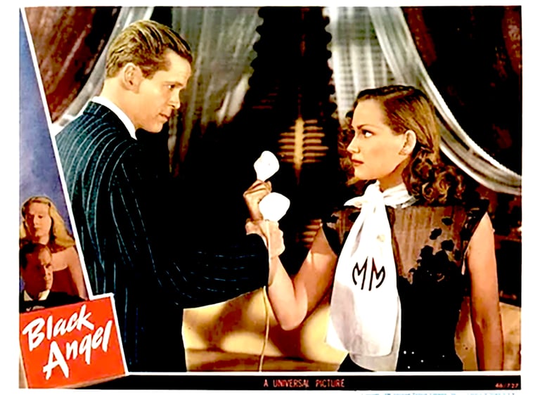 Add more than its fair share of musical numbers to pad the scenario; we see how the flimsy plot is subtly being padded. Add this to the Peter Lorre middle section, and we see a minimal plot stretched for maximum effect. And once Martin is alone in Constance’s home, allowing him to consume her booze, he quickly remembers what occurred to the missing broach and how he murdered Mavis Marlowe, neatly getting his romance subplot out of the way so Constance and Kirk can be together again. Things coincidentally happen to push the plot along. It’s all too pat and mechanical. Even though Black Angel boasts some fine performances and a few outstanding visual moments courtesy of director Roy William Neill and cinematographer Paul Ivano, the film is ultimately hampered by the Roy Chanslor screenplay, which impedes a fine story by Cornell Woolrich. It's a film adaptation with some good and bad parts, producing a fair/reasonable film noir.