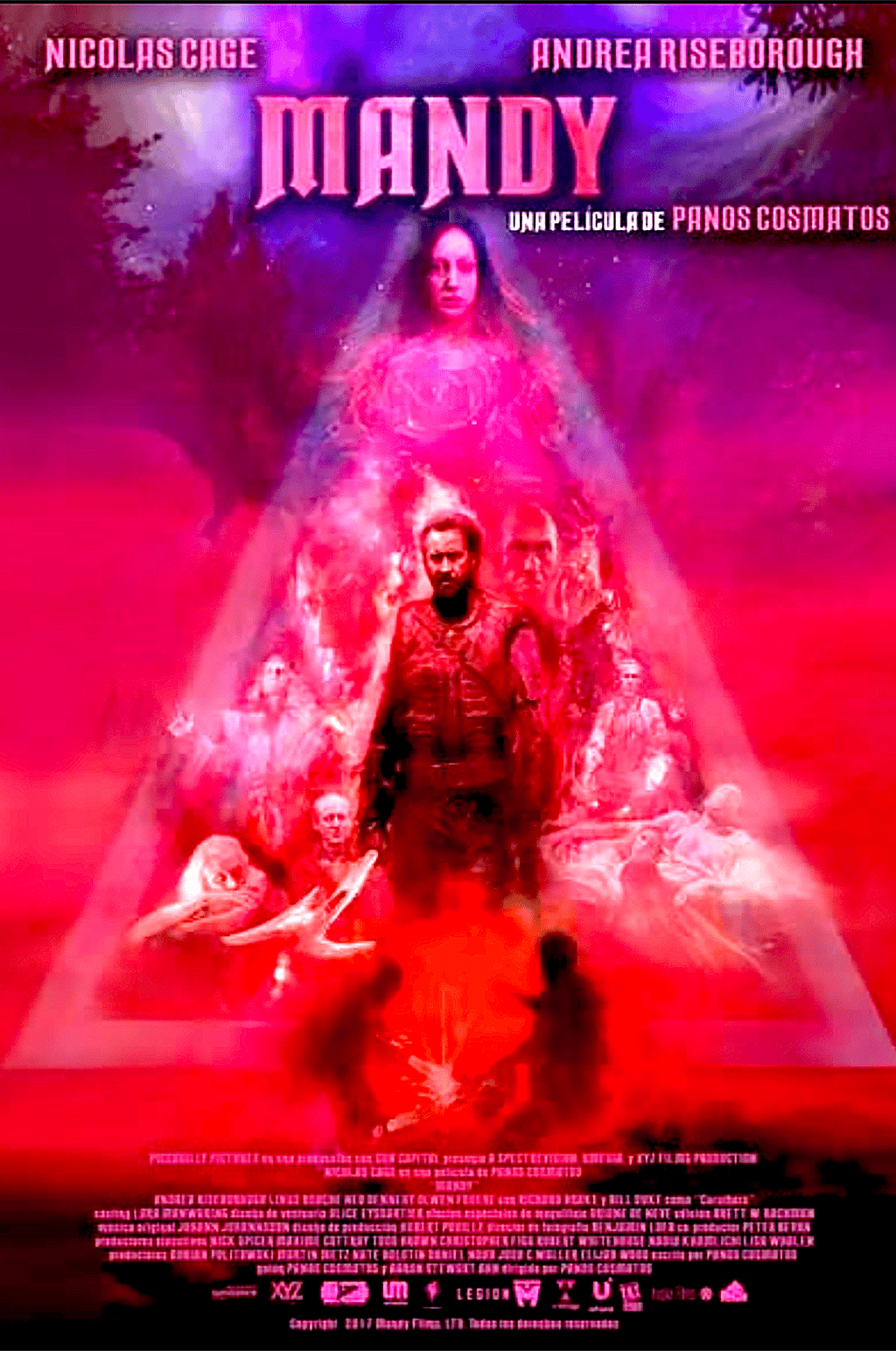 Nineteen Eighties fantasy and Barbarian movies were the films of Panos Cosmatos’ youth. He was influenced by the rudderless feeling of Lucio Fulci’s Conquest (1983) (… weren’t we all). In his grief from the loss of his father, he began writing the story for Mandy, and as a metalhead, he played his enormous heavy metal collection while writing. Incorporating pseudo-religious fanaticism and phantasmagorical visuals, Cosmatos’ Mandy (2018) is an extraordinary, good-versus-evil feast of color and sonics for the viewer.
