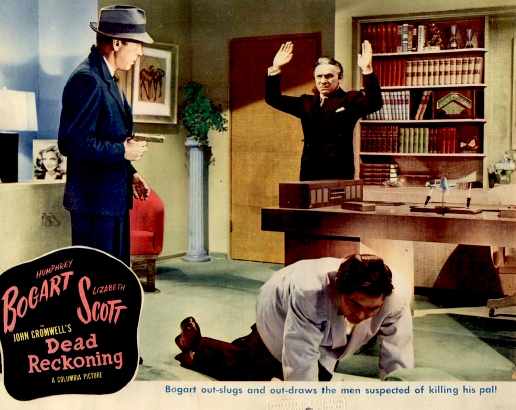 And it does qualify as a superior Bogart movie, even with one major flaw. That flaw is stealing the ending from The Maltese Falcon, only six years later. In that 1941 film, Sam Spade falls in love with Mary Astor, who murders Spade’s partner, Miles Archer. Discovering the truth, Spade says a person is supposed to do something about a murdered partner, and Astor might vindictively strike out at Spade in the future. In other words, he cannot trust her. For morality’s sake, she must be punished. In 1947’s Dead Reckoning, Bogart says he loves Johnny more when asked if he loves Coral. He says when a friend is killed, he is expected to do something. And what is tragic is that both films have little in common besides the toxic relationship between Bogart and Mary Astor/Lizabeth Scott. It’s just too obvious a steal, taking the viewer outside of the movie experience.