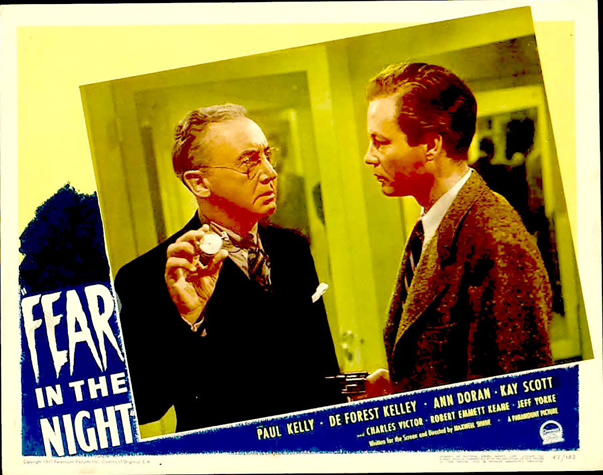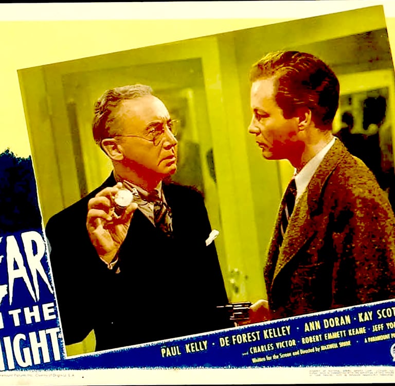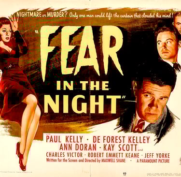 The trope of hypnotism in this movie is similar to the idea that it's all a dream. The first time the trope is used, it's a great gimmick, but by the 10th or 20th time, it becomes, as stated, an overused gimmick. Each audience member must decide for themselves whether the use of hypnotism is a gimmick or a clever trope. Anyway, hypnosis is cleverly and mysteriously used in Fear in the Night, adding mystery and suspense to a movie where few realize just what is going on. And that is the movie’s strength, the utter failure of its audience to figure out the crime and motives until near the end.