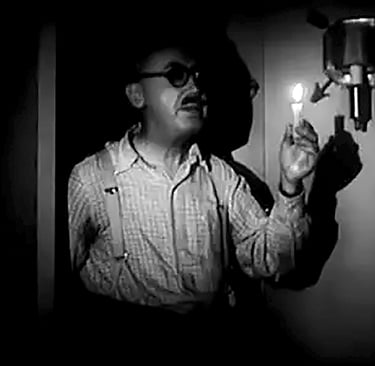 Vince utters, “I’m licked!” Cliff wants him to retell the story of his neighbor, Harry Byrd (Robert Emmett Keane), and a burned-out light bulb in his hotel room. As Vince tells it, he was just going to bed when someone knocked on his door. Byrd enters the dark hotel room with a lit candle, stating that the light in his room went out. He is just checking if the entire circuit went off or just his room. It turns out Vince’s lights are working just fine. Byrd slowly backs out of the hotel room. Cliff repeats the commentary, “He was standing there with a candle in his hand, and he kept saying that you were tired. Eyes thick and glassy, as though you were mentally unbalanced.” Cliff is deep in thought, mulling over a new theory, and quickly leaves the hotel room. Cliff returns with a picture of a man, who, when he draws glasses and a mustache on the photo, resembles Byrd. The man is Dorothy Belknap’s husband. You did not kill Mrs. Belknap because you can’t drive. Mr. Belknap was waiting outside in his car and deliberately drove over his wife. But you did kill a man and stuffed his body in a closet. We got to prove you didn’t know what you were doing and why you didn’t know it.