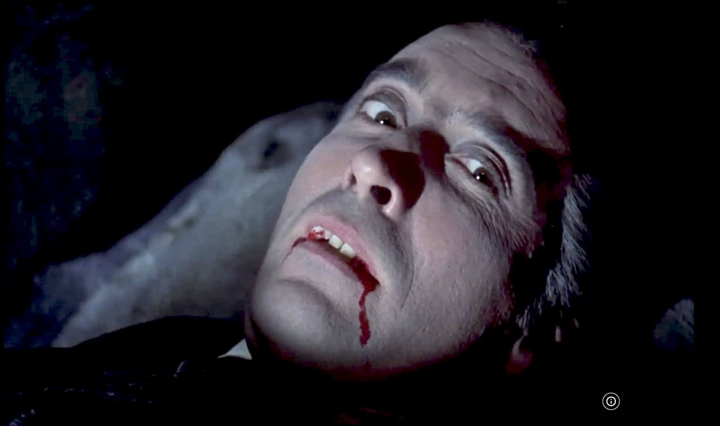 In one of his better scenes from the movie, Arthur Holmwood waits outside his sister’s tomb, she a victim of Dracula. Lucy, his undead sister, runs up to him, wanting to hug him. As she gets closer, a close-up of an arm holding a metal crucifix enters the scene from the right. Lucy’s rapid breathing fills the soundtrack as the crucifix touches her forehead with a sizzling sound, leaving an impression burned into her skin. Terrified, Lucy runs into her crypt. Scenes like this show you don't need much money to create an innovative and frightening sequence. Hammer proved that creativity rules.