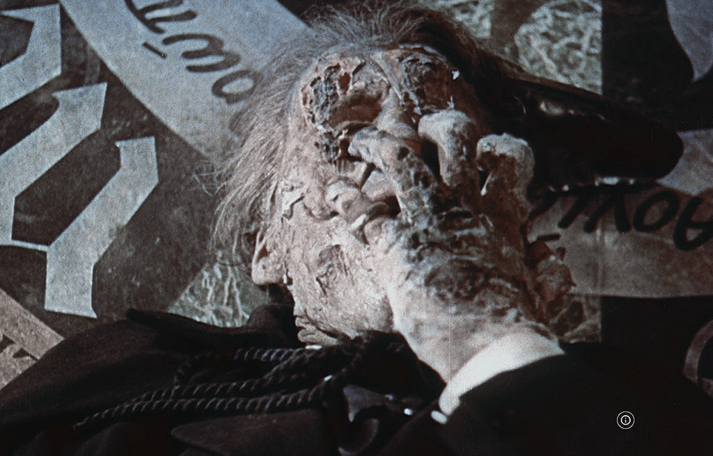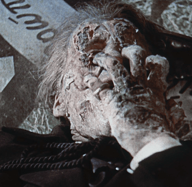 COUNT DRACULA, TRAPPED BY THE RAYS OF THE SUN, DISINTEGRATES AND TURNS TO DUST.