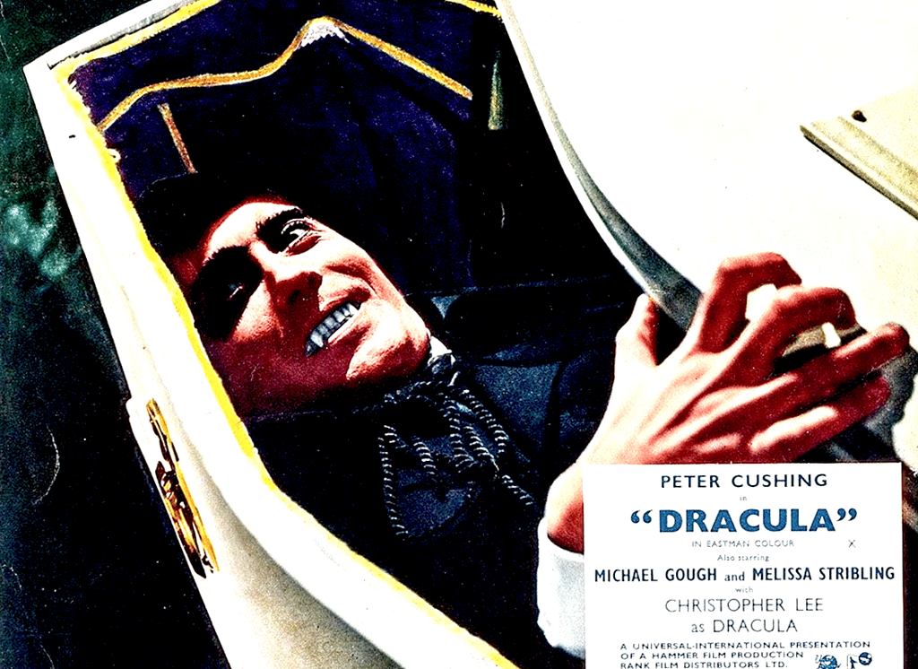 Jimmy Sangster’s screenplay differs significantly from the Stoker novel, even though his story incorporates many elements of the book within his budget-conscious script. Hammer was making “B” movies that appeared much more stylish, featuring good costume design, detailed sets and production design, and some interesting decorative pieces. Hammer Film Productions always aimed for the highest quality, when they could only afford the minimum. Although money, or the lack of it, was always a challenge, Hammer understood that creativity and imagination were essential. Peter Cushing and Christopher Lee knew that these lower-budget fairy tale films mattered to movie fans, and Peter Cushing, whether manipulating small props or pretending to be Errol Flynn, always delivered his fantastical characters with serious dedication and energy. Many have observed that Cushing played each role as if he were performing in a Shakespeare play rather than a horror movie.