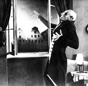 “Nosferatu: Does not this word sound like the call of the death bird at midnight? Take care you never utter it, lest life’s pictures fade into pale shadows, and ghostly dreams rise from your heart and feed on your blood. Long have I pondered the original and passing of the Great Death in my hometown of Wisborg. Here is its story: In Wisborg there lived a man named Hutter (Gustav von Wangenheim) and his young wife Ellen (Greta Schroder) ..."