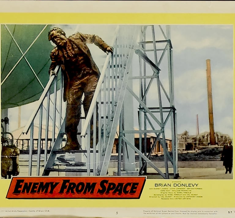 Released in the U.S. in 1957, paranoia dominated the cinema. Who could be trusted, and who was alien-controlled? A year earlier, Invasion of the Body Snatchers was released, dealing with hive-minded creatures from space that were consuming humanity one person at a time, with seed pods. But their invasion purpose was clear, not so much here. Four years earlier, Invaders from Mars was released, dealing with another type of hive community once again invading Earth, with Mutants. Again, taken one by one, the invaders could be your father or even a neighbor. Who to trust, and who would believe you? Your own backyard was not safe. But Quatermass 2 might be the most intelligent screenplay of them all, because Nigel Kneale was a science fiction beast. His screenplay is perhaps the more adult one, at least tied with Invasion of the Body Snatchers, filled with his vivid imagination. But this is the least known movie of the three, but it deserves further notice.