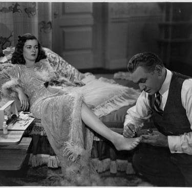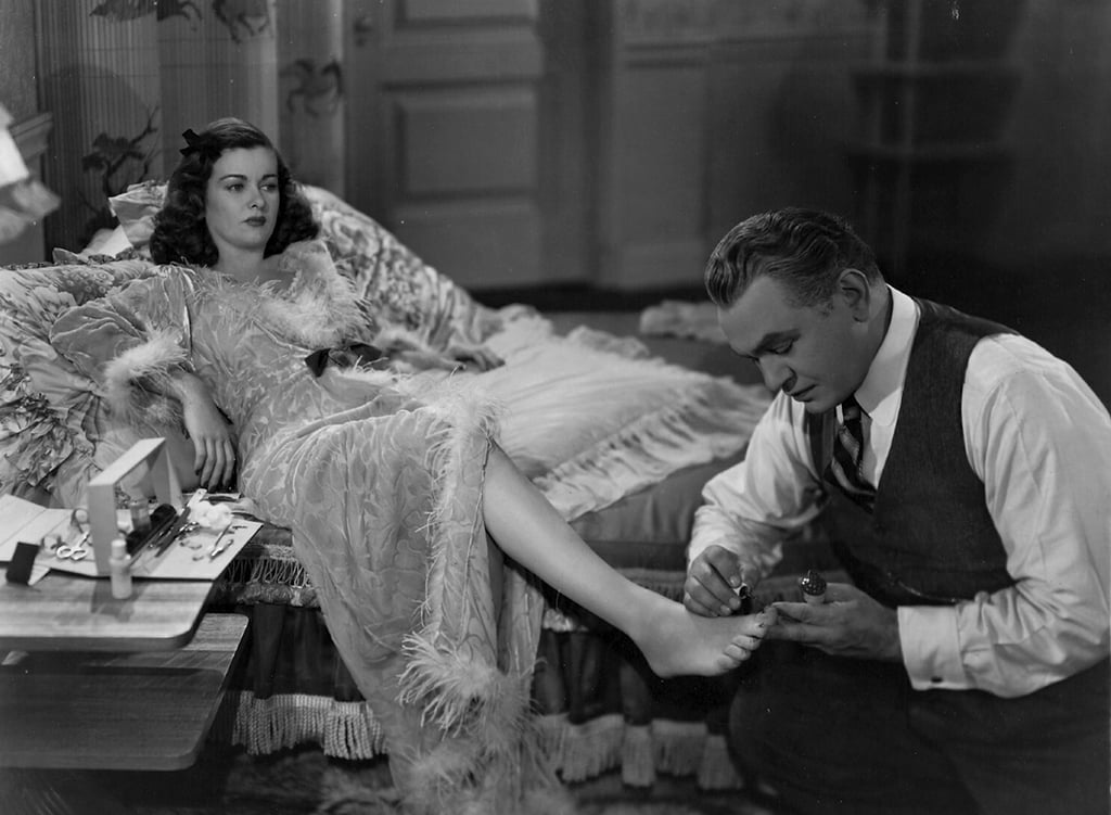 CHRIS CROSS (EDWARD G. ROBINSON) PAINTS THE TOES OF KITTY MARCH (ANN BAXTER)