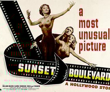 Sequences show Cecil B. DeMille realizing Norma’s fans are cruel, and DeMille desperately tries to gently tell her that the industry has left her behind. Scenes include Betty Schaefer and Joe working to flesh out a six-minute flashback, Betty reminding him of when he was young and ambitious. There are sequences of characters writing secretly at night, and Norma living in her fantasy world by day, Joe feeding her delusions and receiving profitable kickbacks. Shots depict Norma preparing herself with an intense health and beauty routine to look ready for her comeback, which will never happen. Max, who discovered Norma at age 16, directed her early films and was her first husband, admits these facts. Artie wants Betty to fly to Arizona to get married. Betty tells Joe she loves him and is no longer in love with Artie. Norma finds the unfinished script written by Joe and Betty and realizes they are in love. Norma calls Betty to ask if she knows where Joe lives and with whom. Joe listens in. Norma confesses she bought herself a revolver. Connie and Betty go to Norma’s mansion. Joe explains to Betty why he lives there, allowing Norma to indulge her wildest earthly needs. Betty leaves Joe without a word. Joe packs his bag, saying he’s leaving Norma. He tells Norma the truth—that Max writes the fan letters and there won't be a movie with DeMille. Joe steps outside with a suitcase, and Norma shoots him three times in the back. Joe falls face down into the lighted pool. Norma, delusional after the murder, hears the news cameras are ready and thinks a Hollywood movie is being filmed. She floats down the stairs, poses for the cameras, and thanks her fans one last time. And yes, Norma is ready for her close-up.