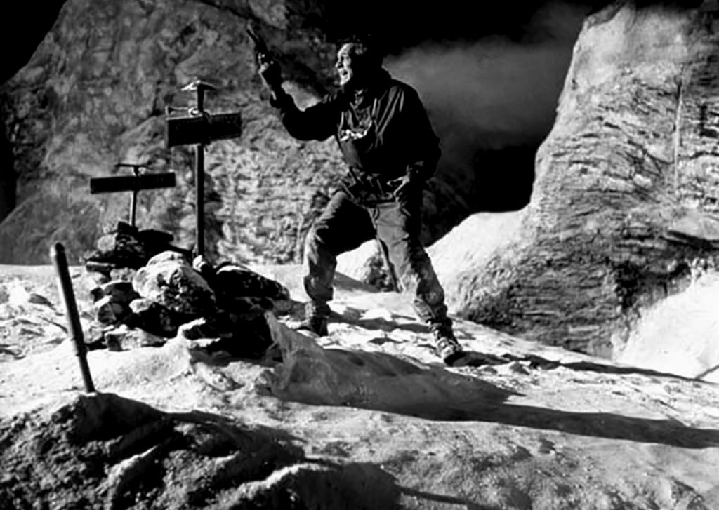 In the cave, Rollason thinks he hears the busted radio telling everyone to abandon their gear and rush to home base, and Tom Friend thinks he hears Shelley’s voice crying for help. Falsely believing Shelley is still alive, Friend breaks out of the barricaded cave entrance to search for him. Friend fires his pistol, starting an avalanche that buries him as he quietly waits in the snow. Rollason digs out of the cave trying to find him, but John quickly realizes his quest is useless.