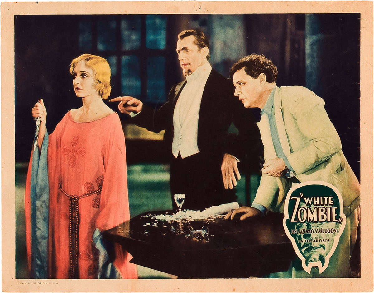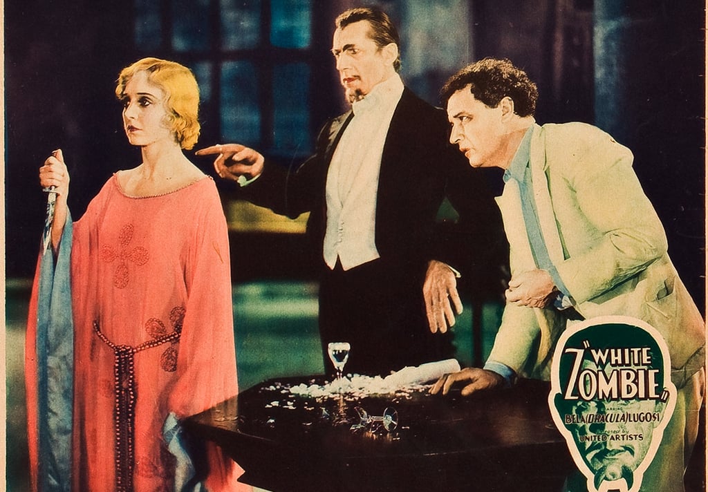 A two-horse-drawn coach rides into the dark, accented by background lights. A smiling, happy couple sits inside, listening to the tribal drums and chanting. The coachman (Clarence Muse) comes upon people filling in the grave, and he’s quite terrified. The young couple queries that there’s a funeral on the road. The driver tells the couple that they are afraid of people who steal bodies, so they bury the corpse in the middle of the road. The young couple, Neil (John Harron) and Madeline (Madge Bellamy), watch as the coach carefully maneuvers across the grave. Neil smiles and utters, “There’s a cheerful introduction for you to our West Indies,” as the coach rocks back and forth. The coach rides on as a pair of transparent eyes superimpose themselves across the screen. As the coach drives on, they come upon a mysterious figure dressed in a hat and a long cape, Murder Legendre (Bela Lugosi). The driver asks the man for instructions, and Legendre gazes inside the carriage, his eyes transfixed and terrifying. Then, a group of animalistic men approaches, and the driver goes wide-eyed, yelling, “Zombies!” Then he clicks the horse’s reins, taking off into the night. The mysterious man, not saying a word, steals Madeline’s white scarf as the coach drives away. Exiting, the couple notices an old graveyard, and the Murder smiles, putting the scarf inside his coat.